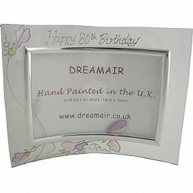 Delicately hand painted by Dreamair in silver relief with infills of frosted pastel colours to celebrate a special birthday. Photo Frames fit a 6inch x 4inch photo,boxed. We are proud to be in Stoke on Trent UK the historic home of traditional potteries think Wedgwood,Royal Doulton,Spode any many more.