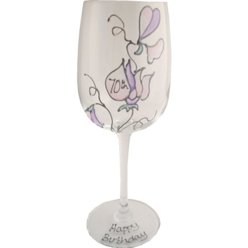 Happy 70th Birthday Sweet Pea Wine Glass holds 16 fluid oz, height 8in.Hand Painted in the UK,fully washable this Sweet PeaÊWine Glass is initialled by the artist and boxed with aÊcard of authenticity of our Casas range - all hand painted fully washable pieces.We are proud to be in Stoke on Trent UK the historic home of traditional potteries think Wedgwood,Royal Doulton,Spode any many more.